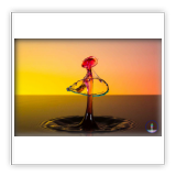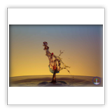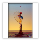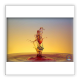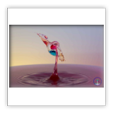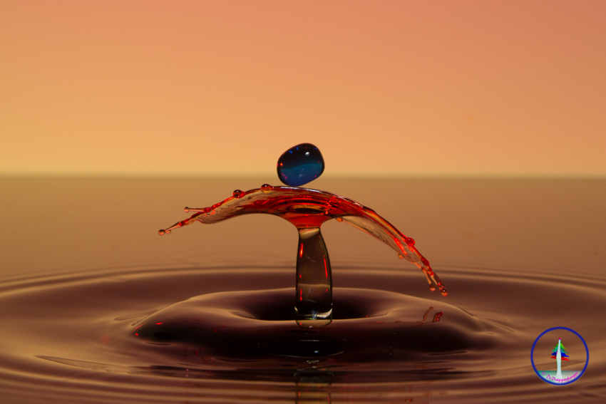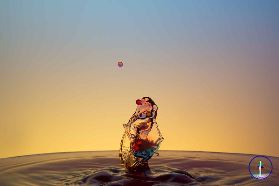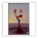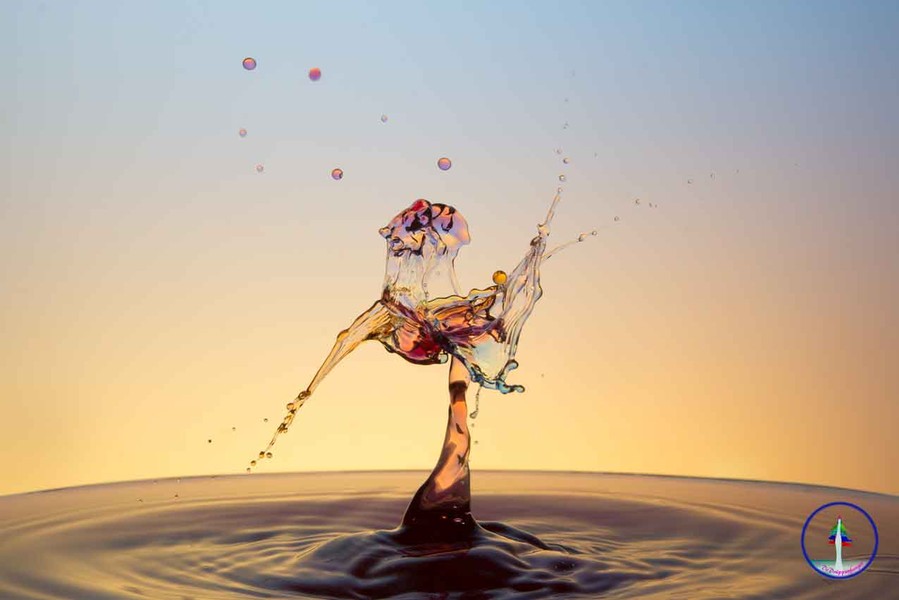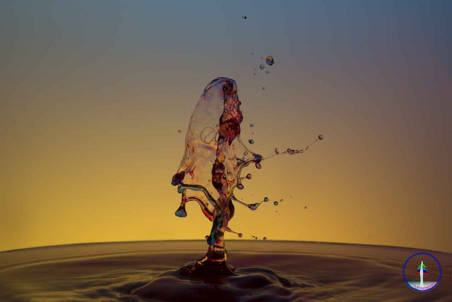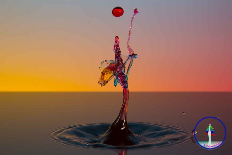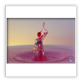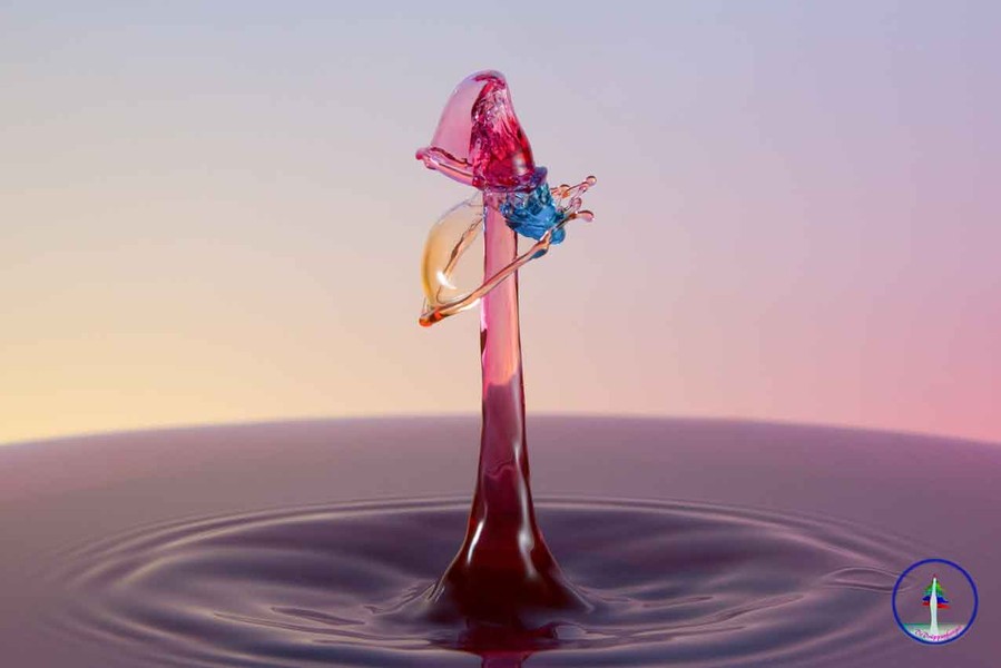 Eingefärbte Flüssigkeiten treffen aufeinander. Zusätzlich wird mit farbigen Blitzen gearbeitet.